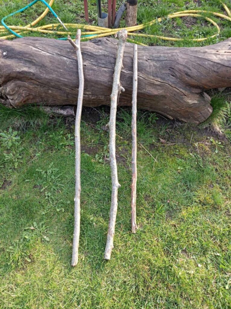 Visszatérve kicsit az én történetemre: A három bot tehát megvan alapanyagnak, de még mindig nincs ötletem, hogy hogyan csináljak ebből valami jót. Az lenne az igazi, ha az egyiknek a hosszát meg tudnám toldani egy kicsit. Szereztem egy kb. 30 centis görbe botdarabot. Ezzel ha az egyik botot össze tudnám dugni, akkor egy nagyon mutatós túrabotot kapnék.